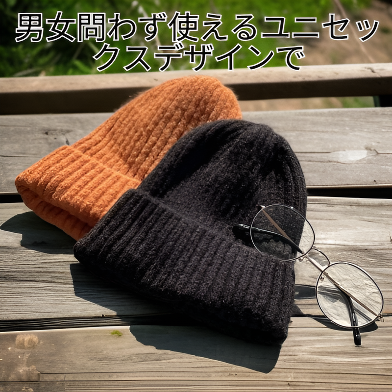 ● ふんわりとした厚手素材で、寒い季節でも頭をしっかり暖かく包み込むニット帽です。