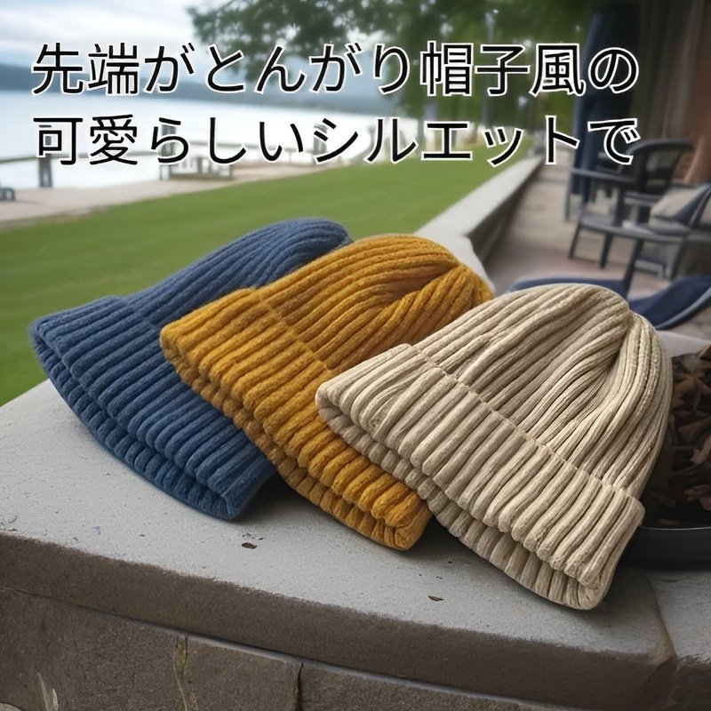 厚手で暖かいニット帽、無地の可愛いとんがり帽子
